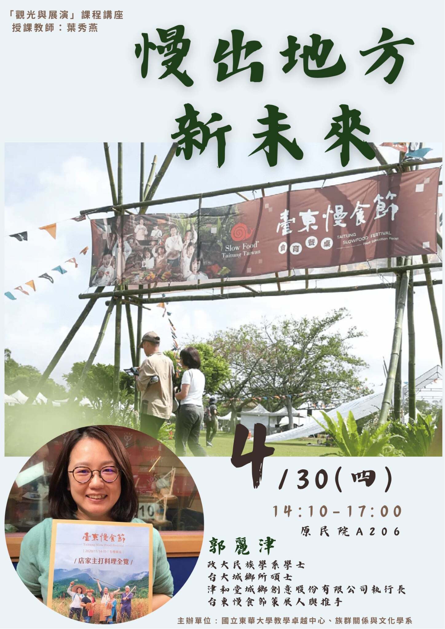 【講座】觀光與展演課程講座-講者:郭麗津(津和堂城鄉創意股份有限公司執行長) 、講題:慢出地方新未來